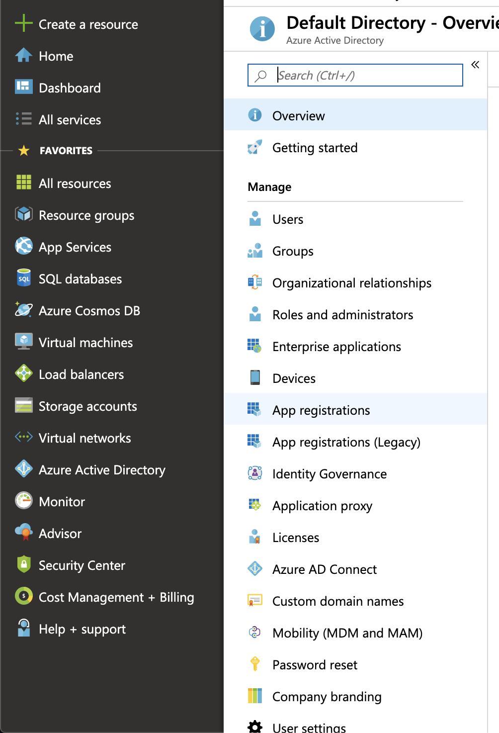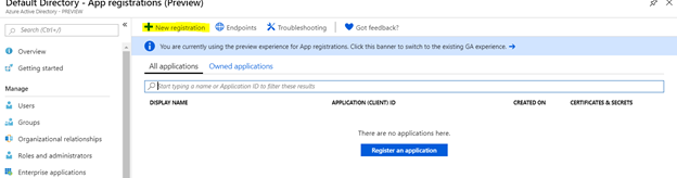 1. Log in to your Azure account and navigate to Azure Active Directory > App registrations.