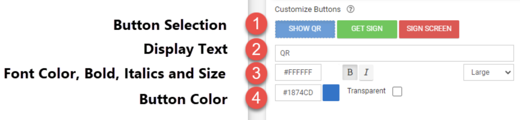 - Display text (Default: Show QR, Get Sign, Sign Screen)